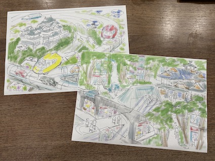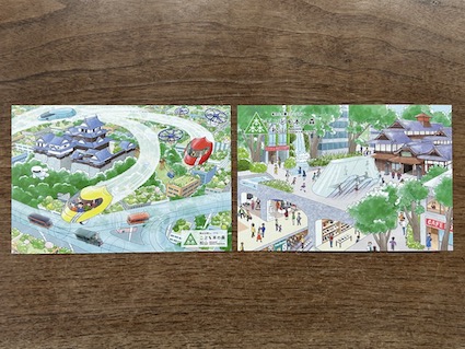 昨年秋頃、しおりが悪戦苦闘して、「未来の道後」(左)、「松山未来予想図」(右)の2種類のポストカードになりました。