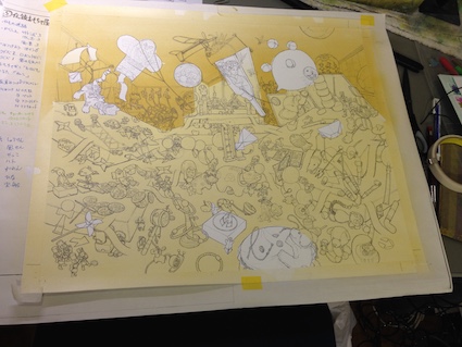 絵本館ギャラリーの原画展会場も早速拝見。ギャラリー入り口で、「お化けの迷路:の拡大画像がお出迎えしてくれました。今日は明日のリハーサルや、事前にお預かりした絵本にサインするなどして、夕方まで絵本館に。