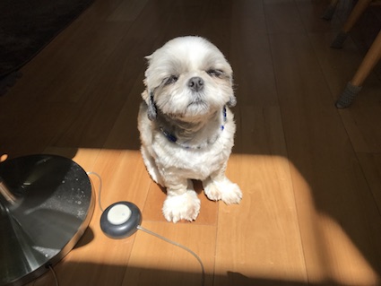 わずかな日向に入りたいこはる。体の大きさがわかってないかも。。。