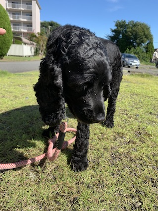 こはるはなんだかしょんぼり。。。藪に顔を突っ込んでゴミだらけになり怒られているところだそうな。