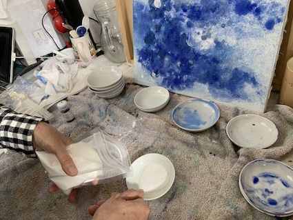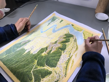 川の色を入れているので、途中で手を止めると塗り跡が残っちゃう。