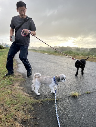夕方の散歩は、雨を避けたつもりだったのに、黒須市民運動場に着いた時には雨が降り出し、すぐに本降りに。。。