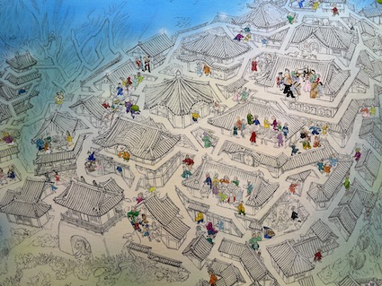 作業は昨日とほぼ同じ、あちこちに散らばった人の色塗りです。