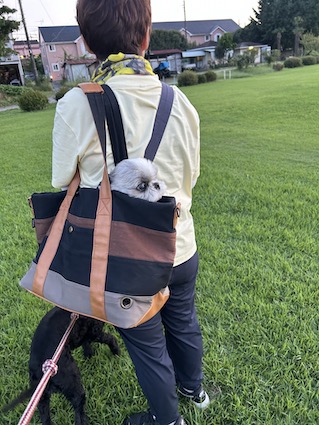 ファービーは最初少し歩いただけで、後はずっとキャリーバックの中。